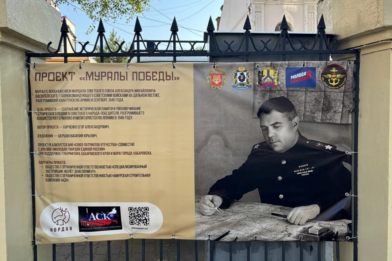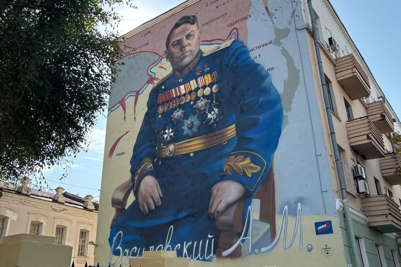 В Хабаровске в рамках проекта «Муралы Победы» создан портрет маршала Василевского. Планируется, что в краевой столице появятся еще пять муралов.