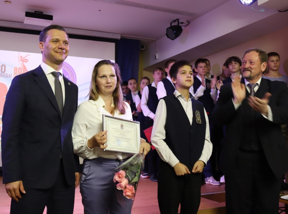 В исполнении воспитанников участники праздника увидели композицию «Флаг России» и постановку «Василий Теркин 1945-2025». Также гостям представили видеофрагмент образовательной экспедиции в город-герой Москву.