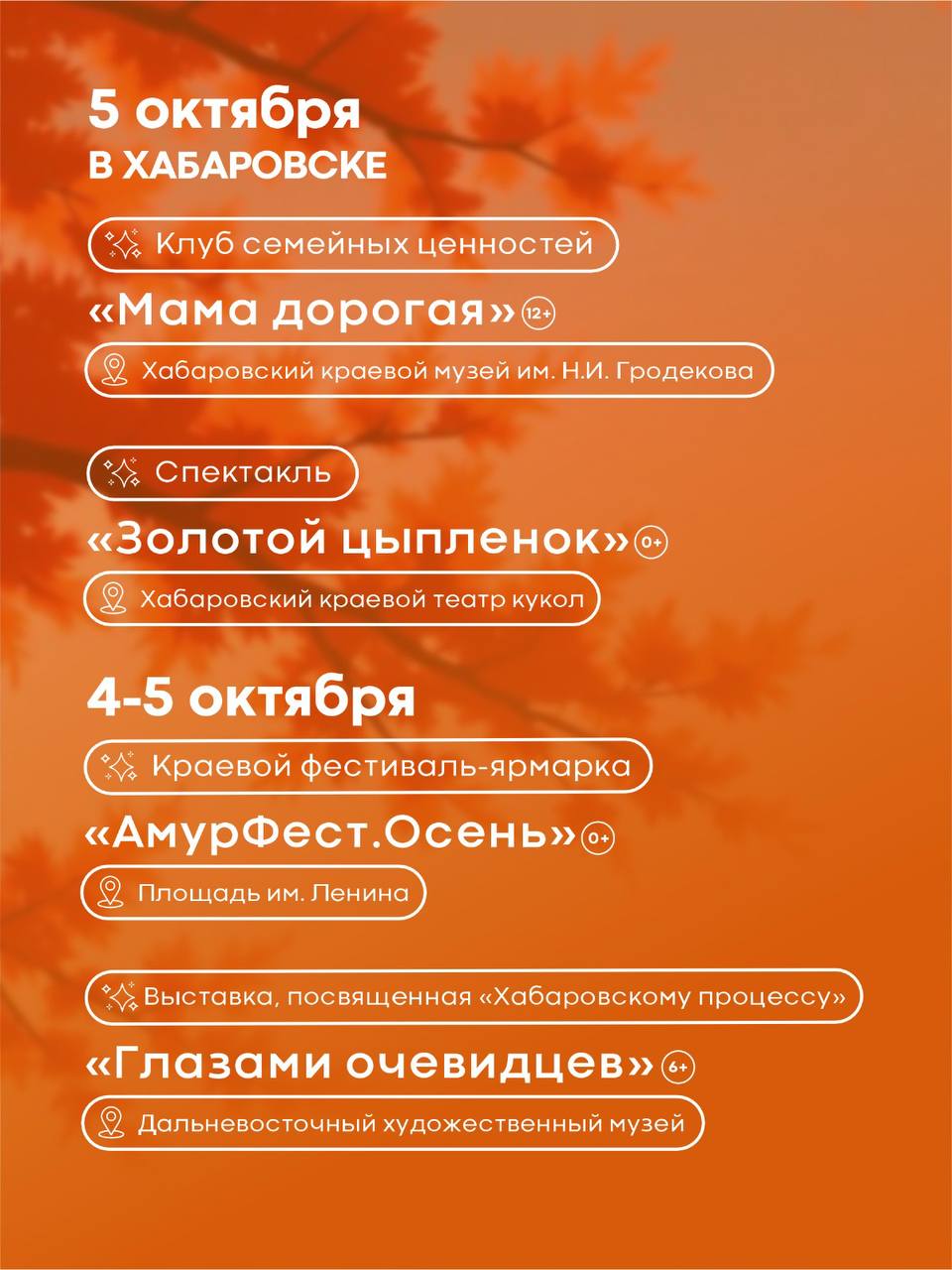 Множество культурных мероприятий ожидается в Хабаровском крае на этих выходных