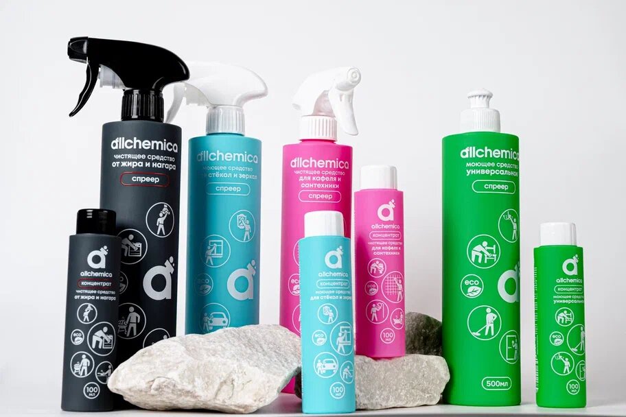 Убедитесь, что все средства для уборки находятся под рукой и удобно организованы. Избавьтесь от множества различных флаконов, каждый из которых предназначен для своей специфической задачи. Один универсальный набор от Аллхимика™ может значительно упростить процесс уборки, так как с каждым флаконом связана конкретная задача, и не придется теряться в выборе.