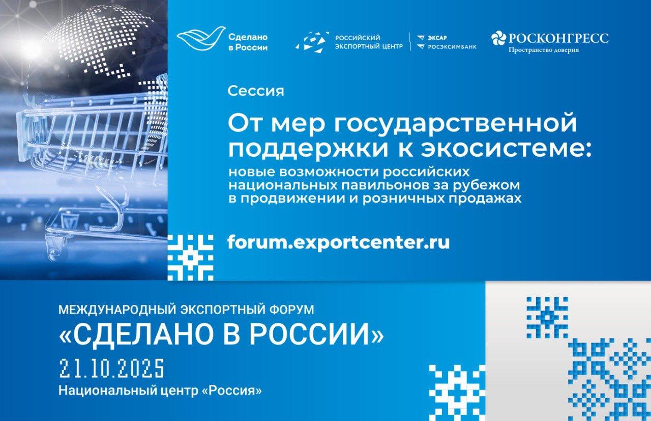 21 октября на Международном экспортном форуме «Сделано в России» проведем сессию: «От мер государственной поддержки к экосистеме: новые возможности российских национальных павильонов за рубежом в продвижении и розничных продажах».
