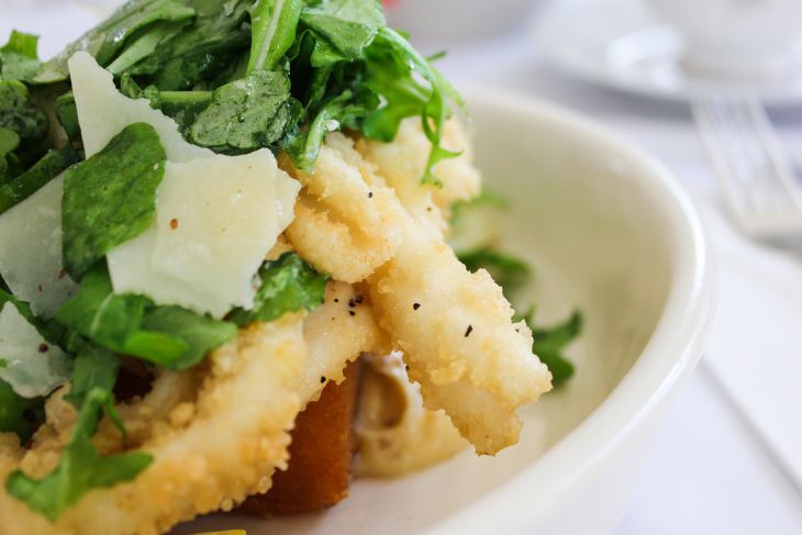 Для их приготовления необходимо взять 50 граммов батона, 2 яйца, 80 граммов сыра, 450 граммов очищенных кальмаров, 1 луковицу небольшого размера, половину ложки соли, 1 щепотку черного молотого перца, половину чайной ложки соли и 3 столовые ложки растительного масла.