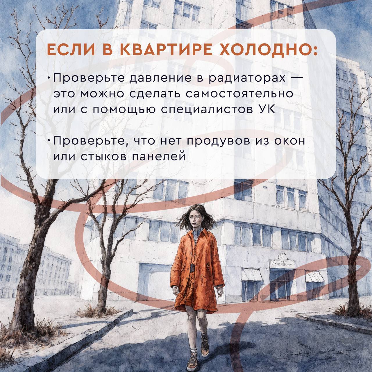Что делать, если в квартире прохладно после подачи тепла, смотрите в карточках.