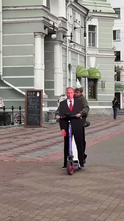 Местный школьник своими руками создал картонную фигуру президента и устроил ей "торжественный объезд" по центру города.