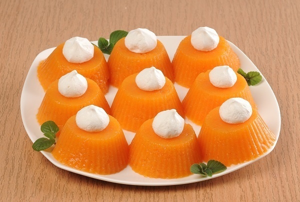 В тыквенное пюре аккуратно ввести набухший желатин, тщательно перемешать и дать остыть. Полученную массу разлить по формочкам для кексов и оставить в холодильнике на 4-5 часов до полного застывания.