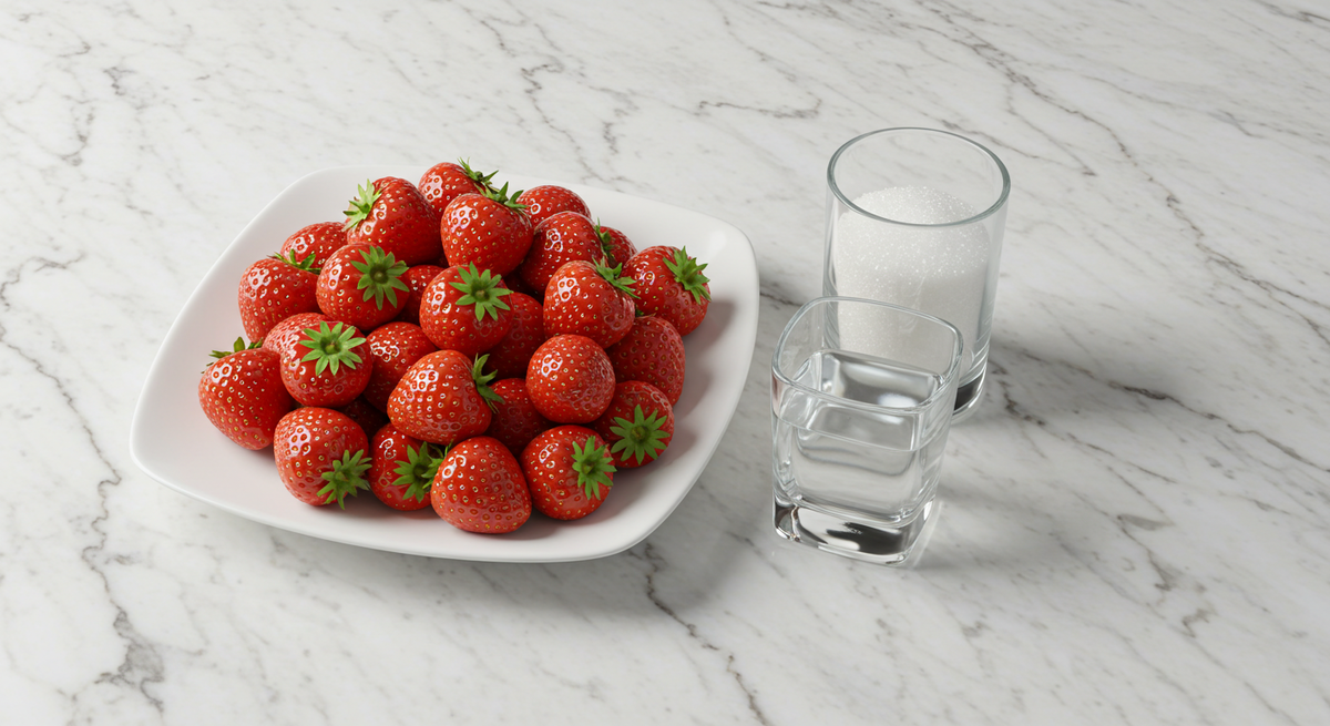 - Клубника: 300-400 граммов свежих ягод (или замороженных).