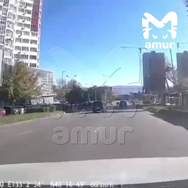Момент аварии из-за голубя с тараном четырёх авто в центре Хабаровска.