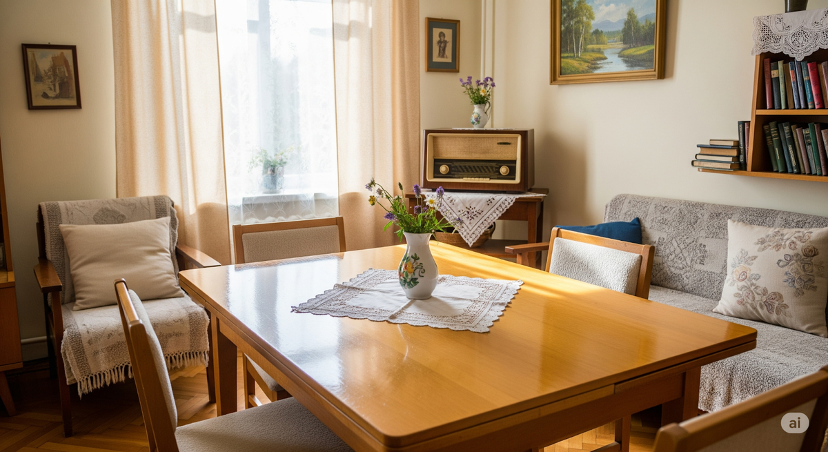 Типичная советская квартира была скромной, но уютной. Компактные пространства часто делились несколькими поколениями, и каждая вещь в доме имела своё значение. Уборка не рассматривалась как рутинная обязанность, а скорее как акт любви и заботы. Простыни, развешенные на морозе, и блеск чистых поверхностей создавали атмосферу домашнего уюта.
