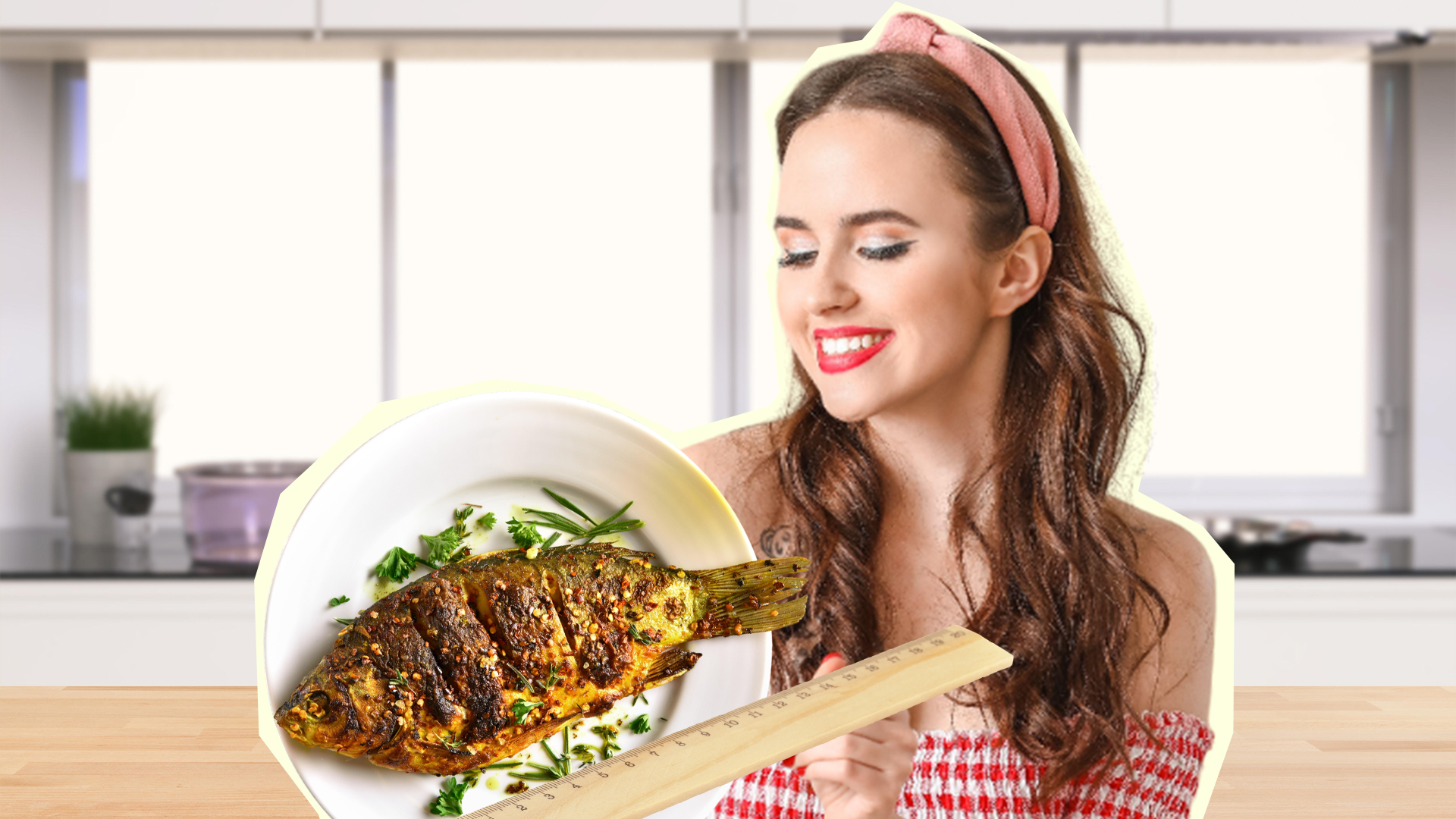 Однако хитрые хозяйки придумали очень любопытный способ рассчитывать нужное время. Вместо того, чтобы тыкать тушку вилкой или пытаться определить готовность по цвету корочки, они измеряют рыбу линейкой.