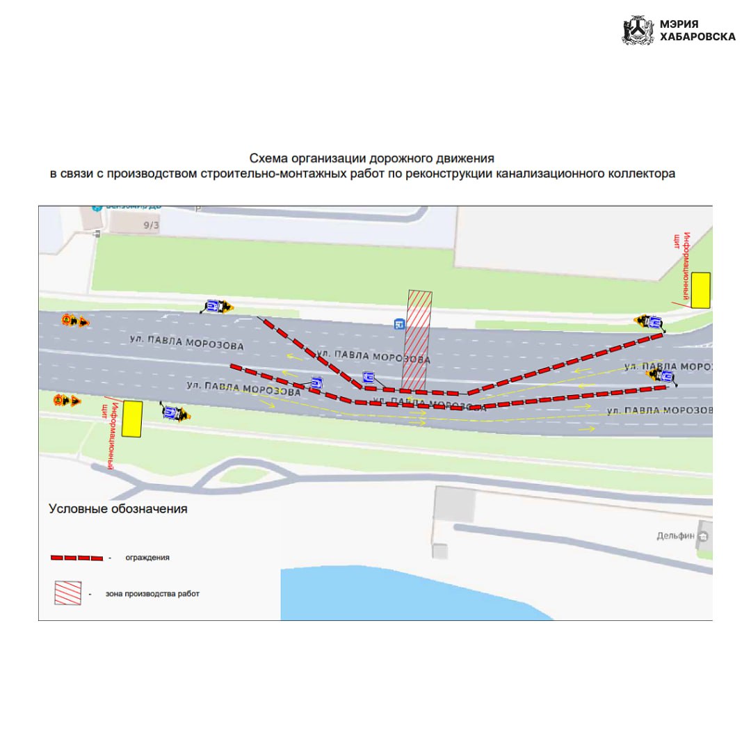 Начало даты ограничения дорожного движения по ул. Павла Леонтьевича Морозова в Хабаровске переносится на 16 октября 2025 года.