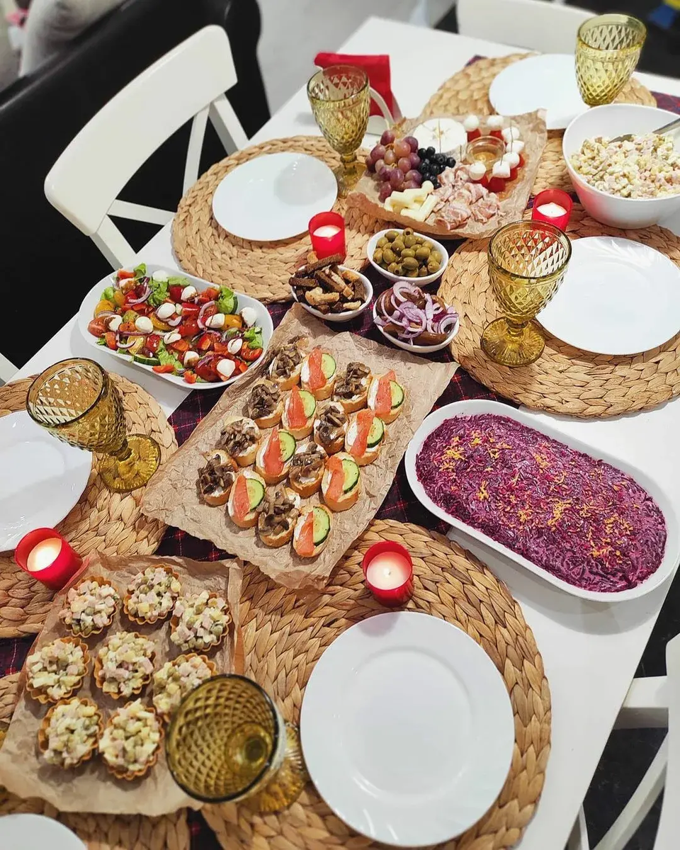 Первым делом стоит обратить внимание на уже полюбившиеся салаты, ставшие настоящими символами новогоднего застолья:
