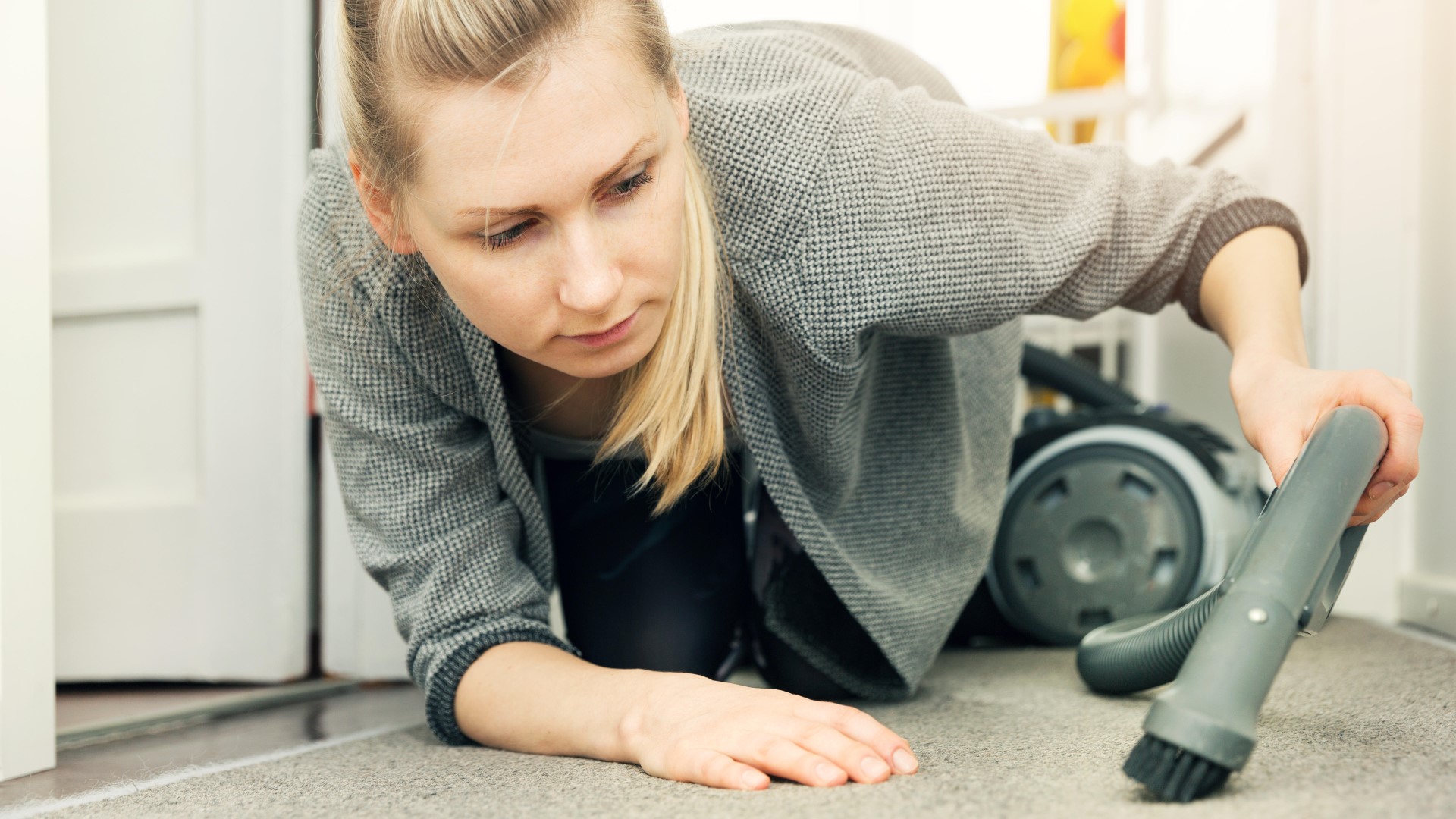 Перед чисткой пылесосом ковер нужно смочить водой. Например, из пульверизатора. Затем подметите покрытие веником с толстыми прутьями и только потом приступайте к привычной уборке.