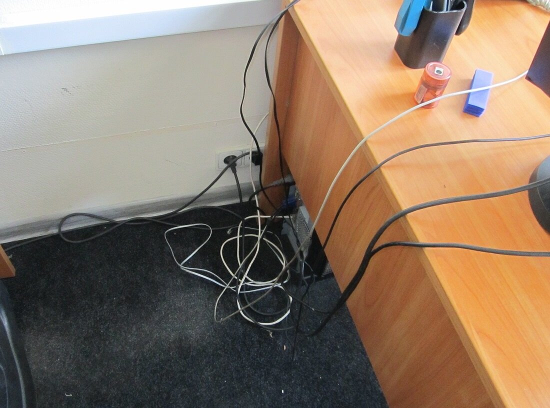 - Компьютерные провода: На первый взгляд, рабочая поверхность может казаться идеальной: клавиатура и мышь блестят от чистоты. Однако провода, лежащие на столе или за ним, могут рассказать совсем иную историю. Чистка кабелей — важный этап подготовки к визиту.