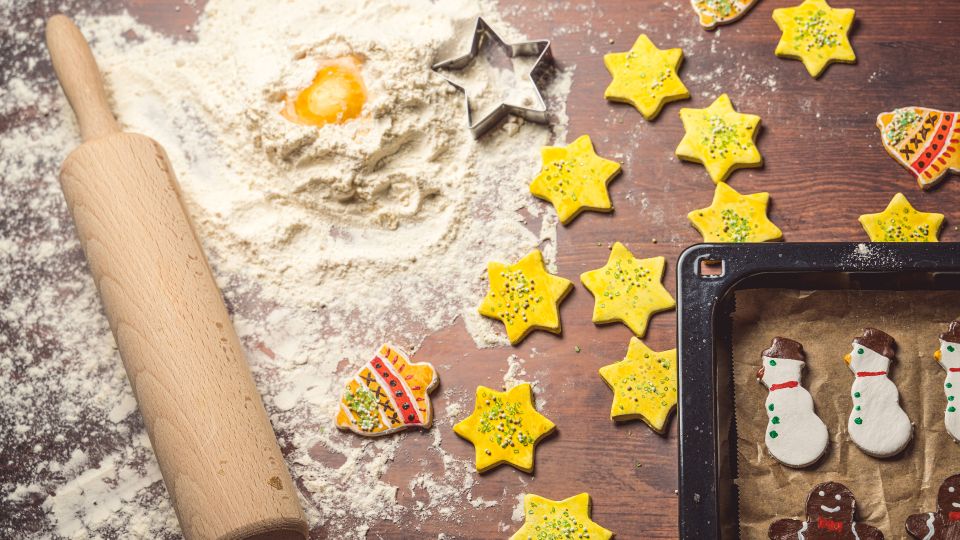 После того как тесто взойдет, раскатайте его слоем до 5 мм толщиной. Остается вырезать формочками само печенье и отправить в духовку на 10 минут при температуре в 180 градусов. По готовности украсьте выпечку глазурью, советует портал Steprecept.ru.