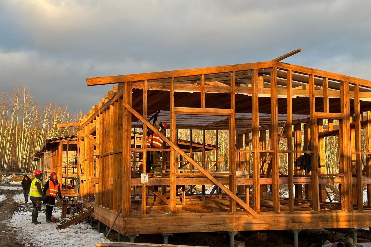 возведено 4 индивидуальных жилых дома, которые представляют собой сборные модульные каркасные конструкции из бруса с террасами, подключенные к центральным сетям теплоснабжения, водоотведения, водоснабжение, электрифицированы;