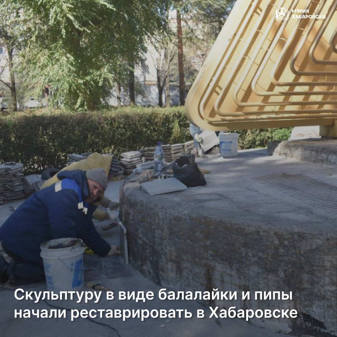 Скульптуру в виде балалайки и пипы начали реставрировать в Хабаровске
