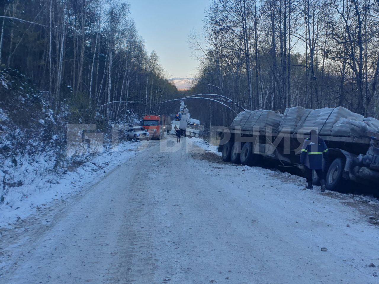 Преодолеть заснеженный перевал не получается у большегрузов в Хабаровском крае