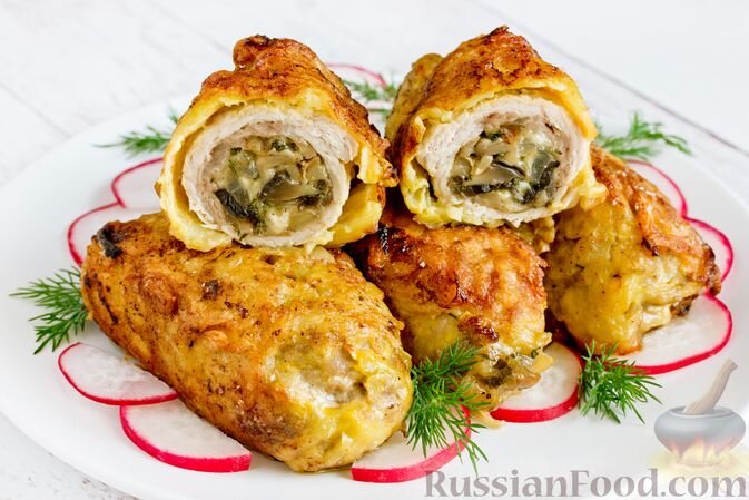 - Мясные рулеты с грибами в картофельной шубке: Нежные рулеты из свинины, обернутые в золотистую корочку из тертого картофеля, будут настоящей звездой стола. Их сочная грибная начинка добавляет особый вкус.