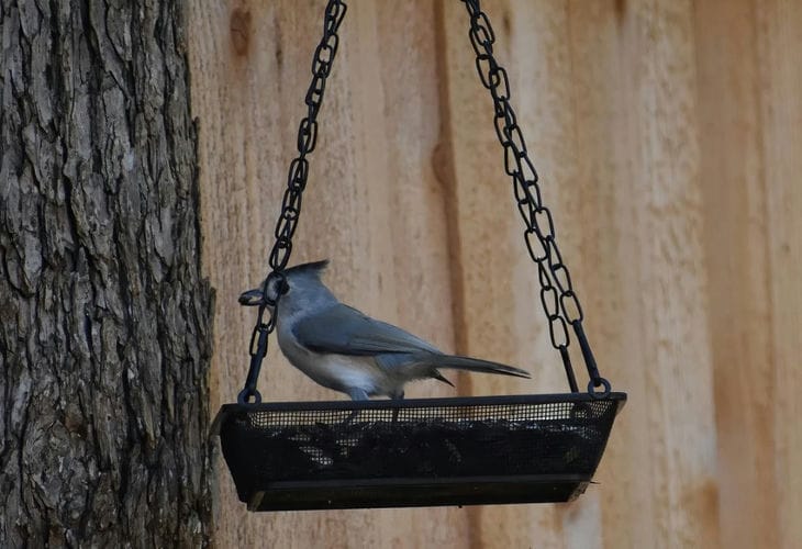 Можно подвесить какой-нибудь ненужный лоток, например, от яиц. Его ячейки прямо созданы для того, чтобы насыпать в них корм для птиц.