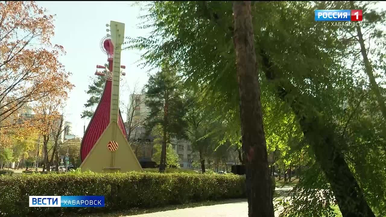 Монумент находится на пересечении Амурского бульвара и Шеронова и выполнен в виде огромных музыкальных инструментов – русской балалайки и китайской пипы. Рабочие демонтировали старую облицовку, армировали ступени постамента сеткой и уже начали укладывать гранитную плитку.