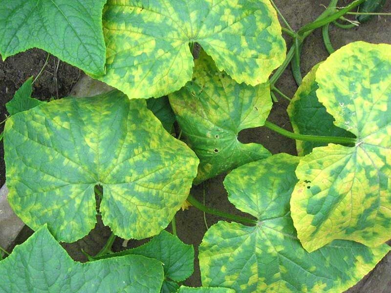 Пятна на листьях возникают из-за разрушения хлорофилла, что приводит к изменению цвета и, в конечном итоге, к отмиранию пораженных тканей. С течением времени погибают молодые побеги, и развитие растений замедляется из-за нарушения водного обмена. В запущенных случаях мозаика может поражать плоды, оставляя на них коричневые пятна, и такие фрукты или овощи лучше сразу утилизировать, так как их дальнейшее созревание не имеет смысла.