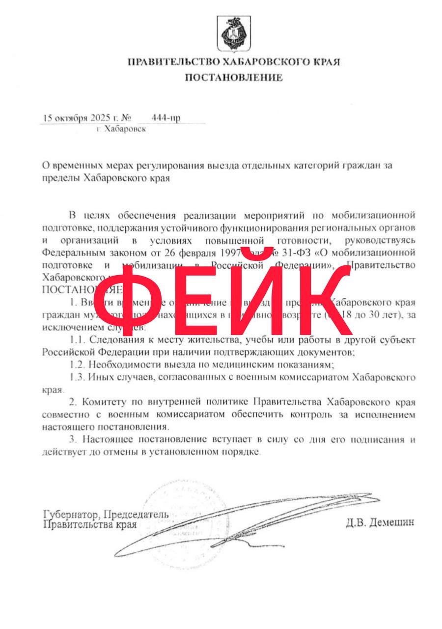 О временном ограничении на выезд за пределы Хабаровского края мужчин призывного возраста;
