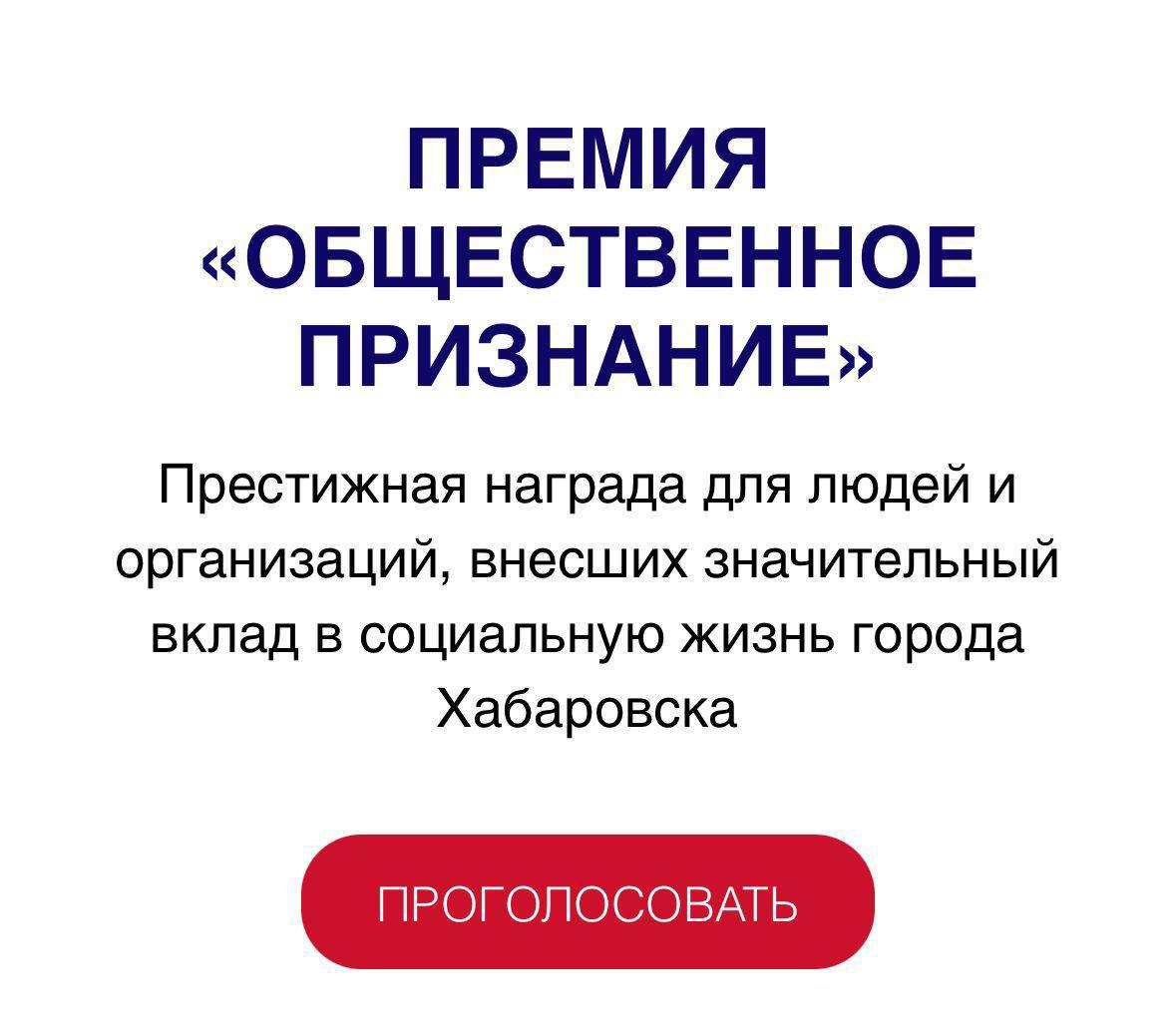 Дан старт общественному голосованию за лауреатов ПРЕМИИ «ОБЩЕСТВЕННОЕ ПРИЗНАНИЕ» - конкурса Общественной палаты Хабаровска среди представителей общественности, реализующих на территории города социально важные проекты