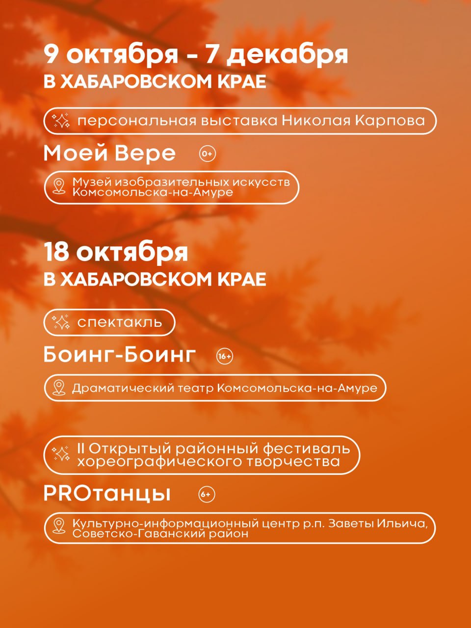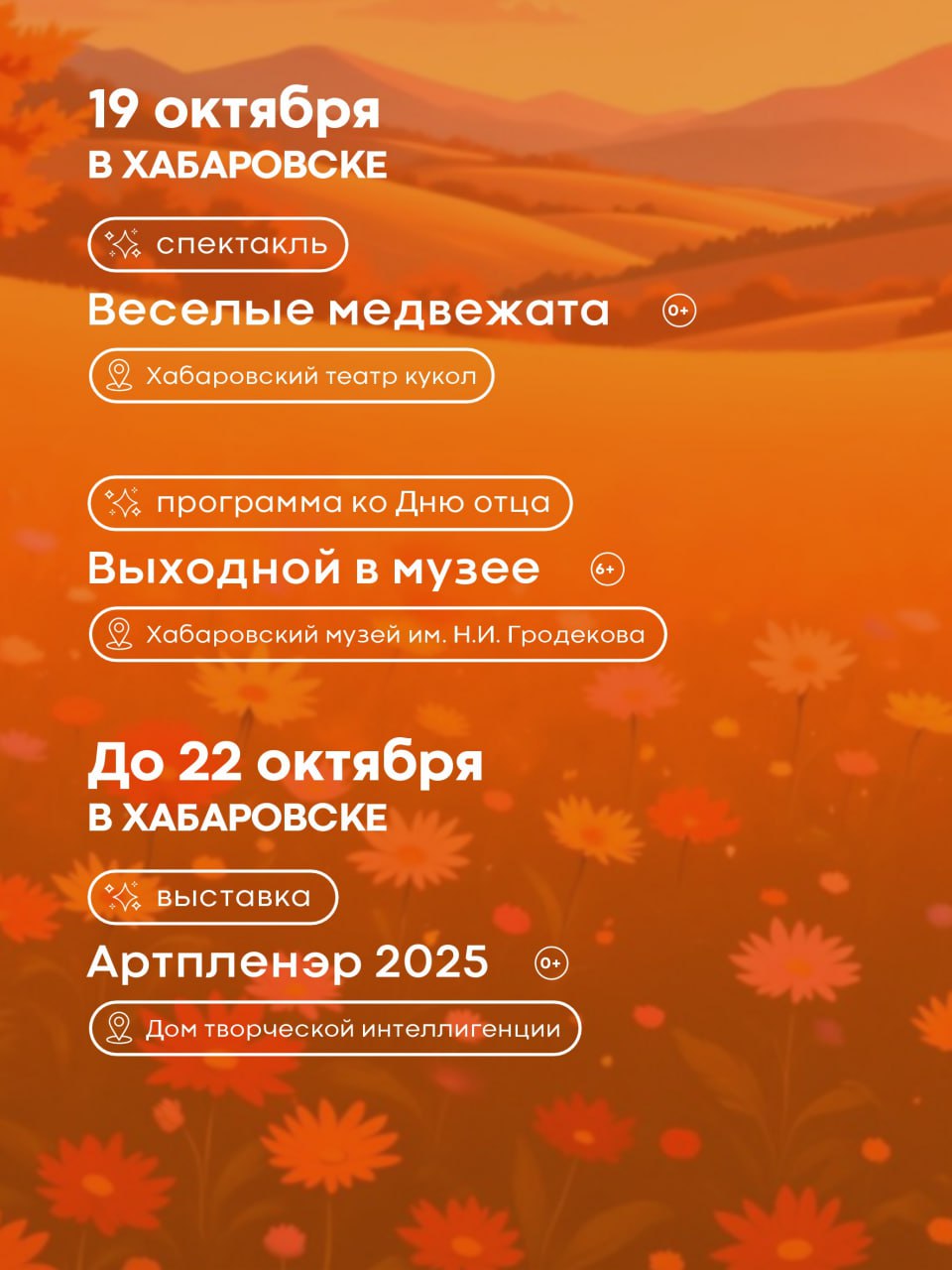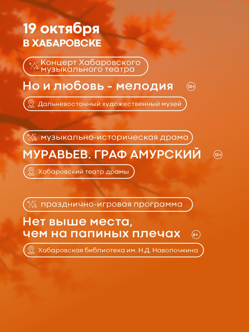 Жителей региона приглашают культурно отметить 87-летие Хабаровского края и День отца. Так, в ближайшие два дня в крае пройдут фестивали, концерты и праздничные программы.