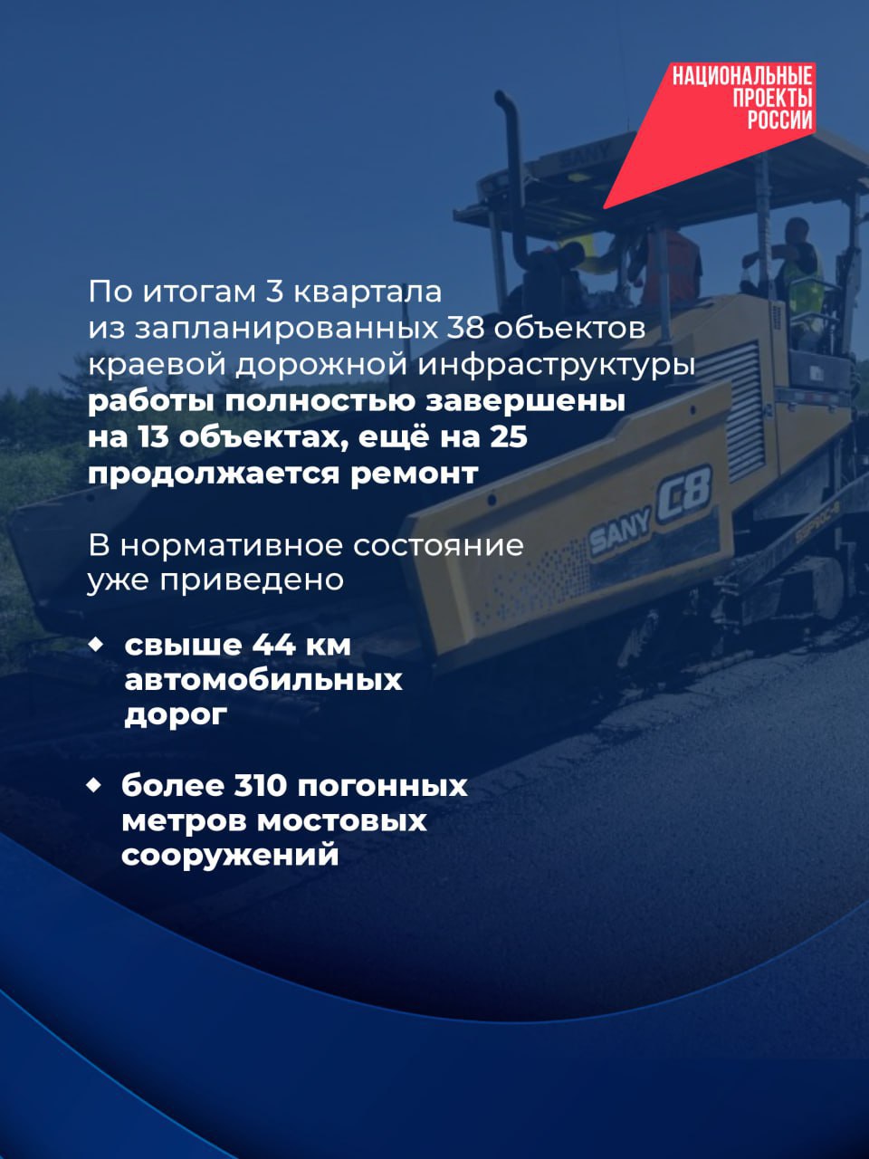В нормативное состояние уже приведено свыше 44 км автомобильных дорог и более 310 погонных метров мостовых сооружений. Подробнее – в карточках.