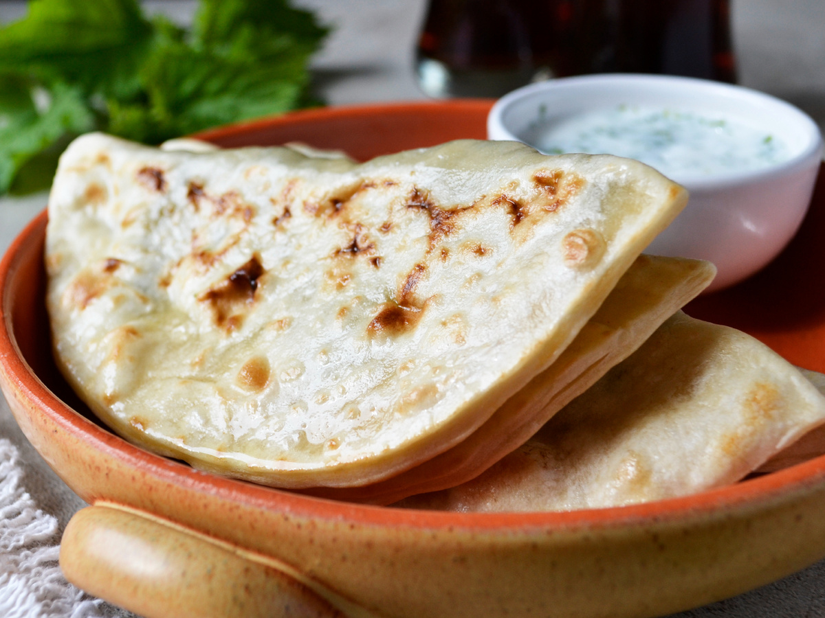 На разогретой сухой сковороде лепёшки жарятся по 1,5-2 минуты с каждой стороны под крышкой — это придаёт им аппетитный румяный вид и прекрасно пропекает внутри. Как только лепёшки готовы, их можно смазать сливочным маслом, что сделает их еще более мягкими и ароматными.