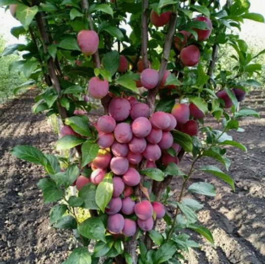 Колоновидные сливы отличаются своей уникальной формой: ствол поднимается вверх, а короткие боковые ветви создают узкую, вертикальную крону, обычно не превышающую 2,5 метра в высоту. Это делает уход за деревьями и сбор урожая проще и удобнее.