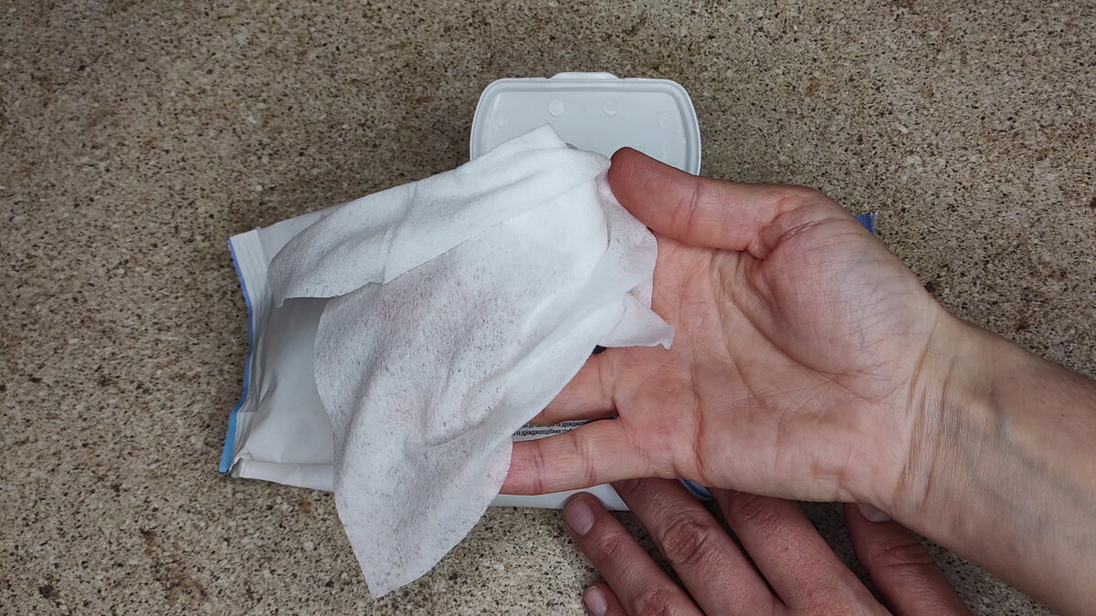 - Влажная салфетка (желательно без ароматизаторов, например, антибактериальная)