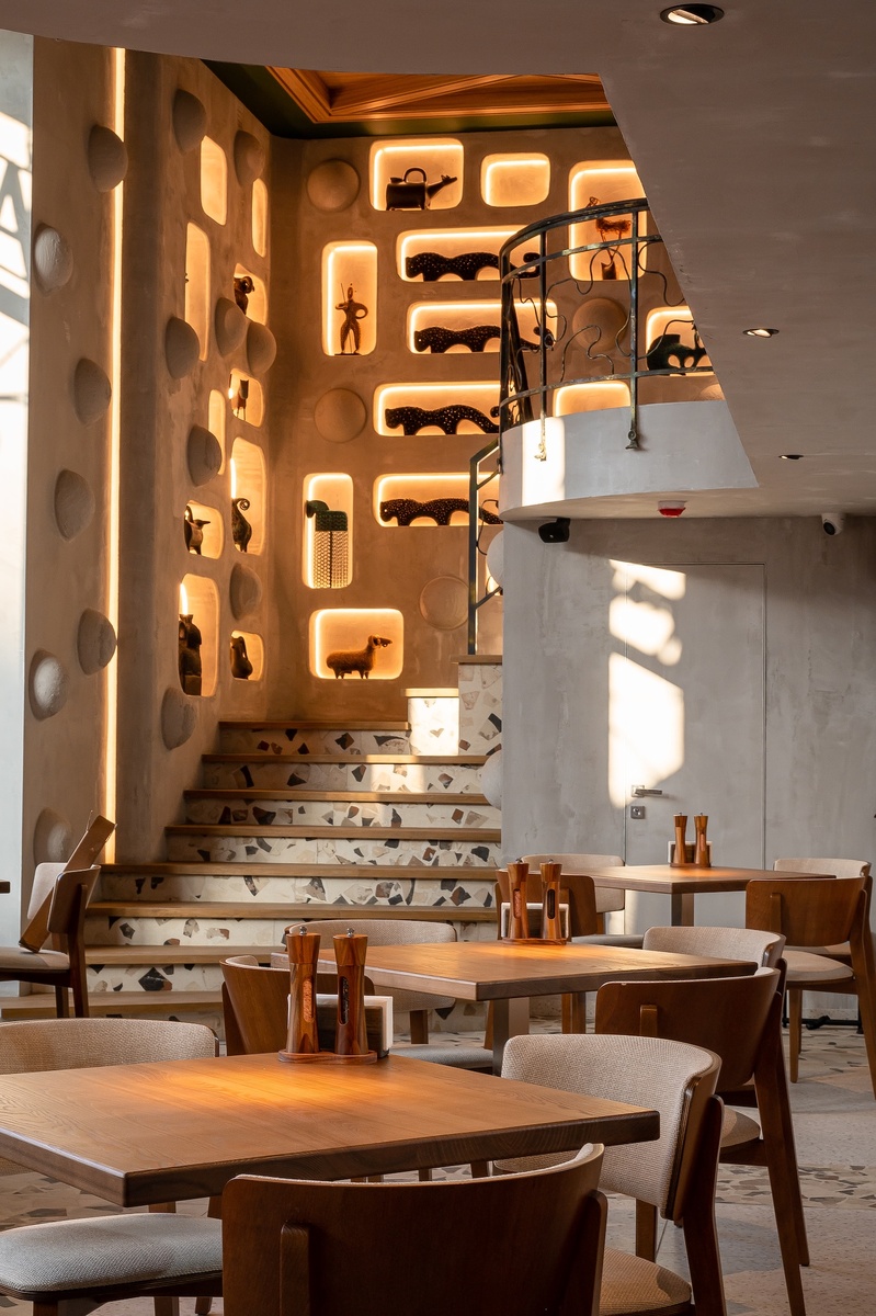 Команда ресторана подошла к разработке интерьера с уважением к традициям и лёгким юмором. Они отправились в экспедицию по Кавказу и странам СНГ, чтобы собрать артефакты, рецепты и уникальные истории. В ресторане восхищает не только еда, но и необычный интерьер, который буквально оживает: