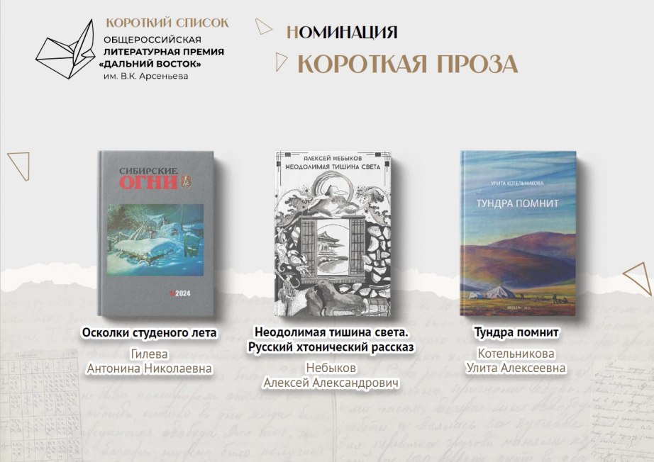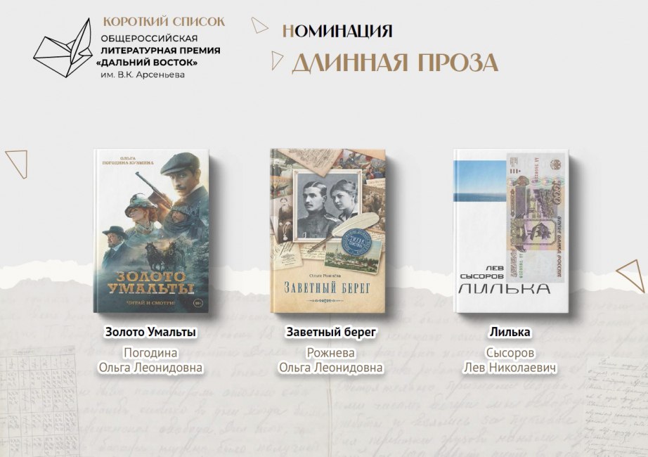 В финал премии им. В.К. Арсеньева, учрежденной по инициативе полпреда Президента РФ в ДФО Юрия Трутнева, вышли 9 произведений. Среди них книга писательницы Надежды Ташлыковой «Земля леопардов».