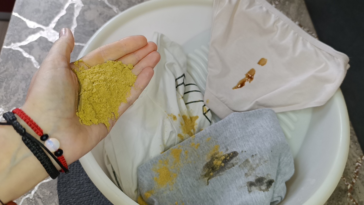 - Замачивание пятен: Перед стиркой обработайте проблемные участки, нанеся горчичный порошок на пятно, слегка смочив его, и оставив на 20 минут. После этого аккуратно потрите и смойте.