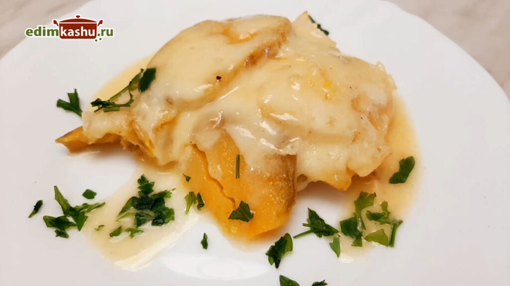 Готовое блюдо подается горячим, полив оставшимся соусом. Вкус запеченного батата прекрасно дополняет сырная начинка, а также особая пряная ароматика, создающая атмосферу уюта и домашнего тепла. Это блюдо станет достойным выбором для ужина и удивит даже самых требовательных гурманов.