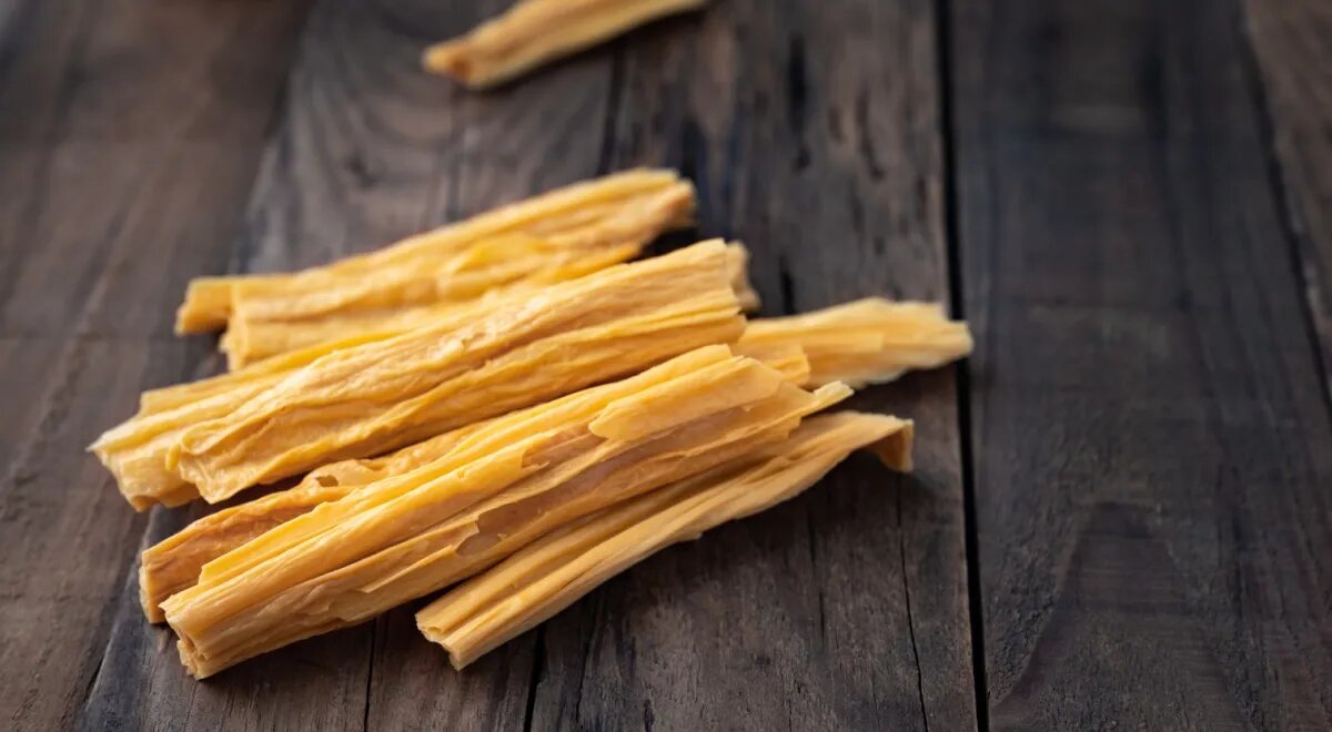 Соевую спаржу, известную как фучжу, изготавливают из пенки, образующейся на поверхности соевого молока. Эта пенка, после просушки, превращается в хрустящий продукт, который часто используется в различных блюдах благодаря своей способности впитывать приправы и соусы. В результате, текстура спаржи становится пористой и мягкой, что позволяет ей прекрасно сочетаться с разнообразными вкусами.