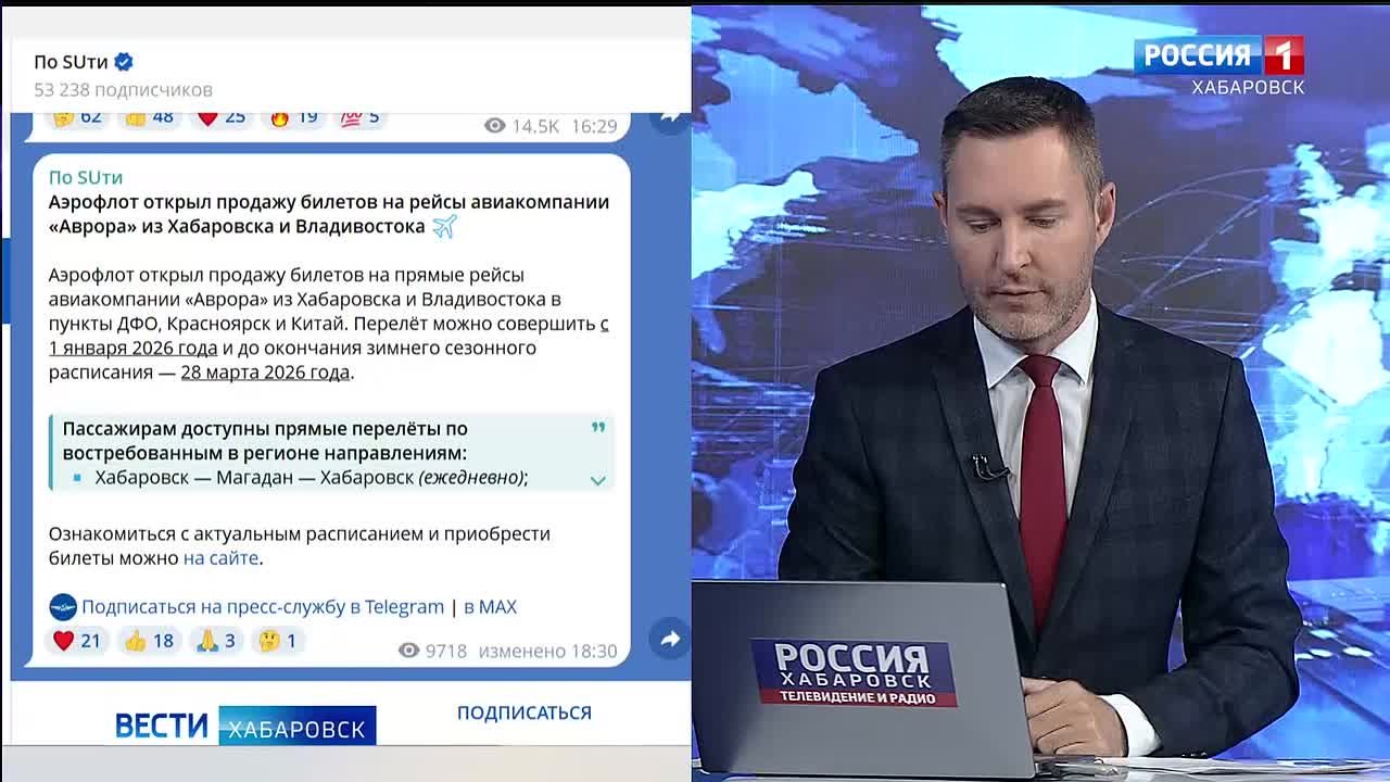Аэрофлот открыл продажу билетов на осенне-зимний сезон на рейсы авиакомпании "Аврора" из Хабаровска в города Дальнего Востока, Красноярск, а также в Пекин и Харбин. Об этом сообщает телеграм-канал перевозчика.