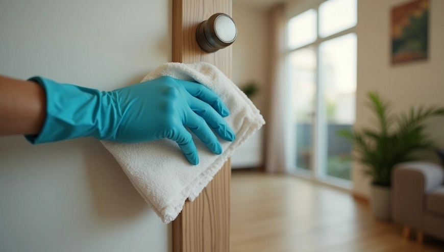 - Ручки шкафов и дверей: Чаще всего мы открываем разные двери и шкафы, не задумываясь о том, что на ручках могут скапливаться остатки пищи и следы от рук. Простой способ очистить: использовать влажную салфетку с антисептиком раз в несколько дней.