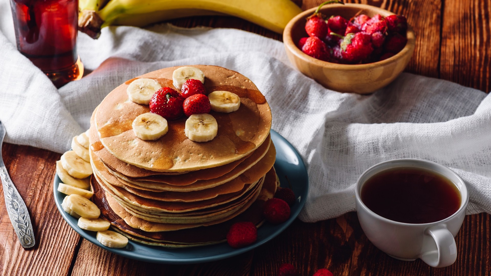 Вместо того, чтобы перекусывать на работе или прогулке снеками либо фастфудом, лучше замените их клубнично-банановыми оладьями. Они гораздо полезнее и сытнее, и к тому же, быстро готовятся. А еще такие оладушки хороши как в горячем, так и в холодном виде.