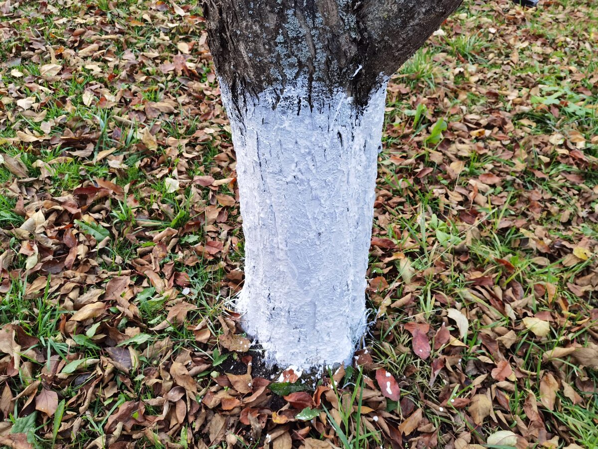 Основное правило — побелка должна охватывать весь штамб дерева. Начинать стоит от корневой шейки и двигаться вверх до скелетных ветвей первого яруса. Но не стоит останавливаться на этом: нижние скелетные ветви также требуют внимания. Обрабатывать их необходимо хотя бы на треть длины, чтобы обеспечить защиту от морозов и вредителей.
