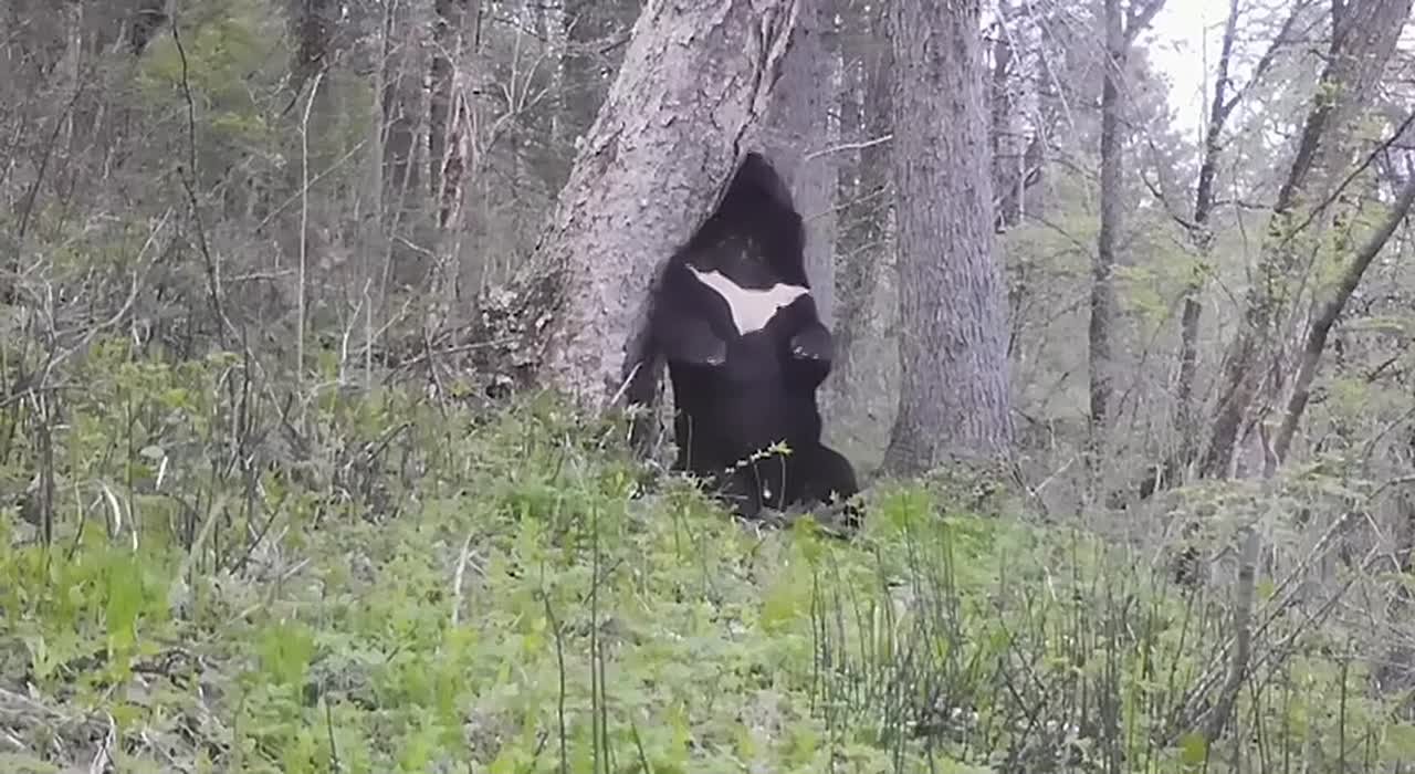 Гималайский медведь облюбовал меточное дерево в районе имени Лазо