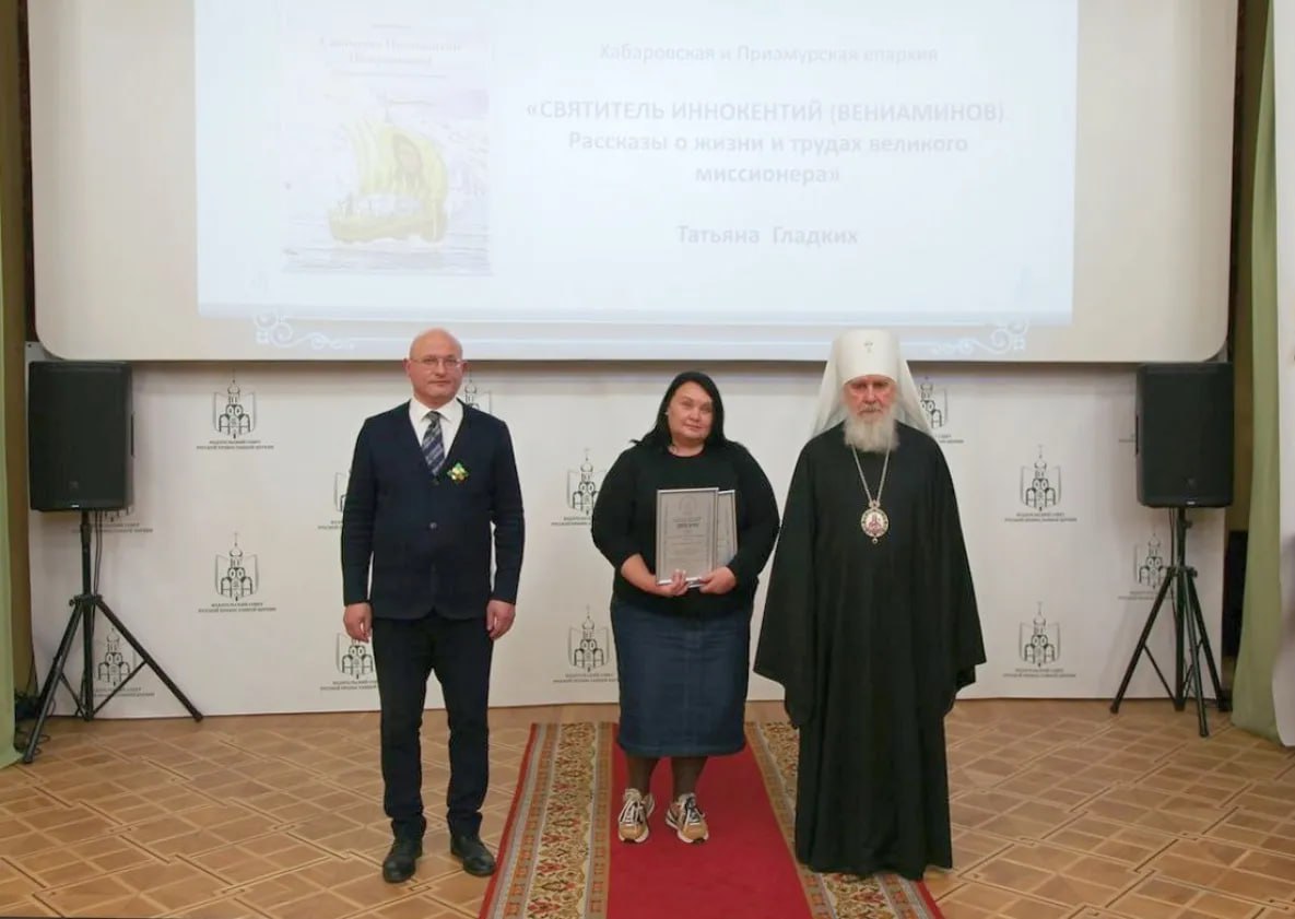 По итогам XX открытого конкурса «Просвещение через книгу» издание хабаровского автора Татьяны Гладких «Святитель Иннокентий (Вениаминов). Рассказы о жизни и трудах великого миссионера» заняло второе место в номинации «Лучшая книга для детей и юношества».