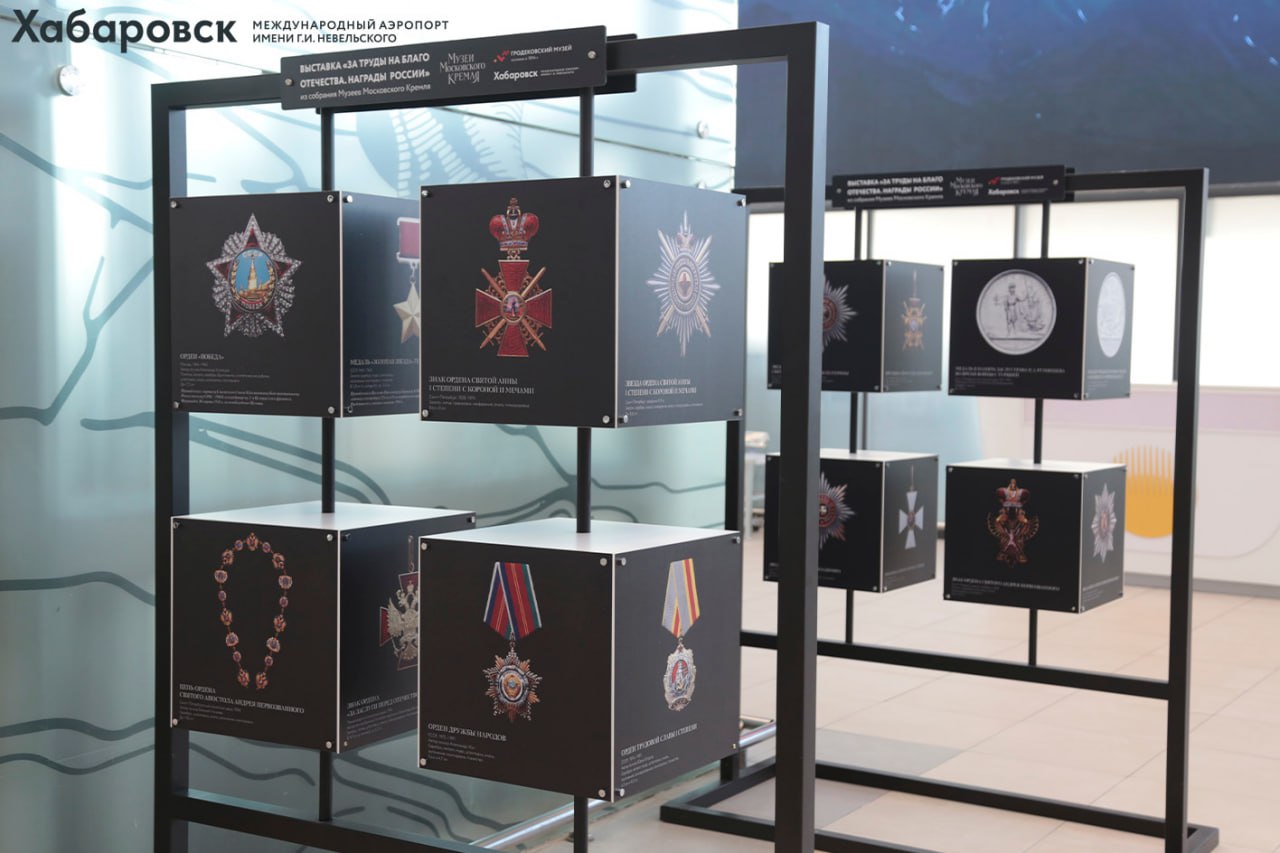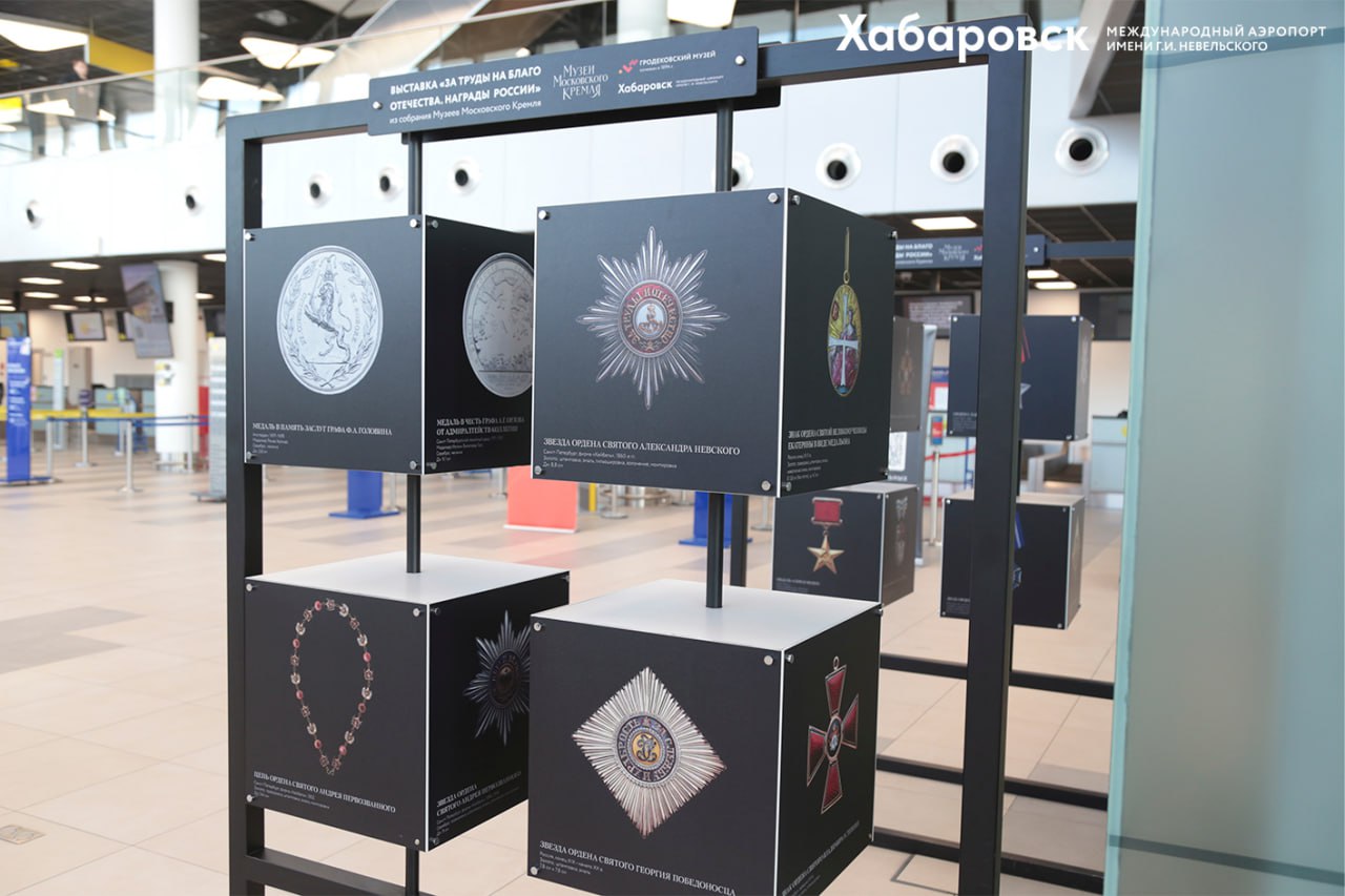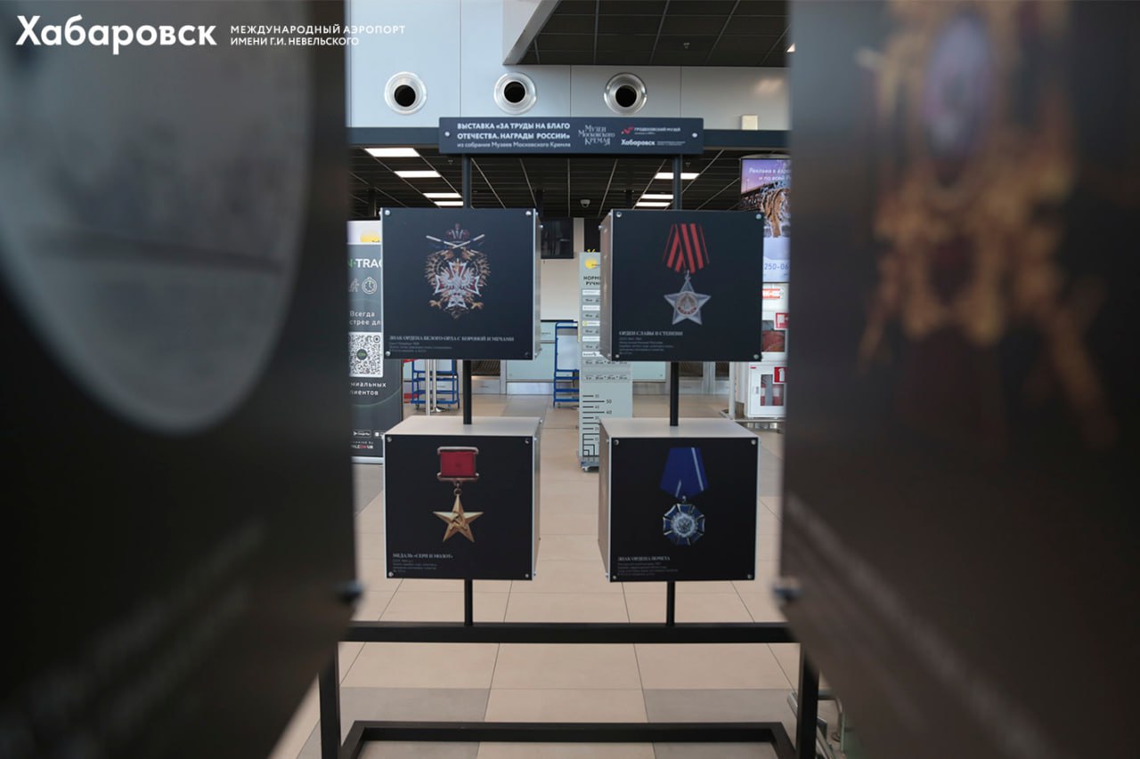 В международном аэропорту Хабаровск начала работу выставка «За труды на благо Отечества. Награды России»