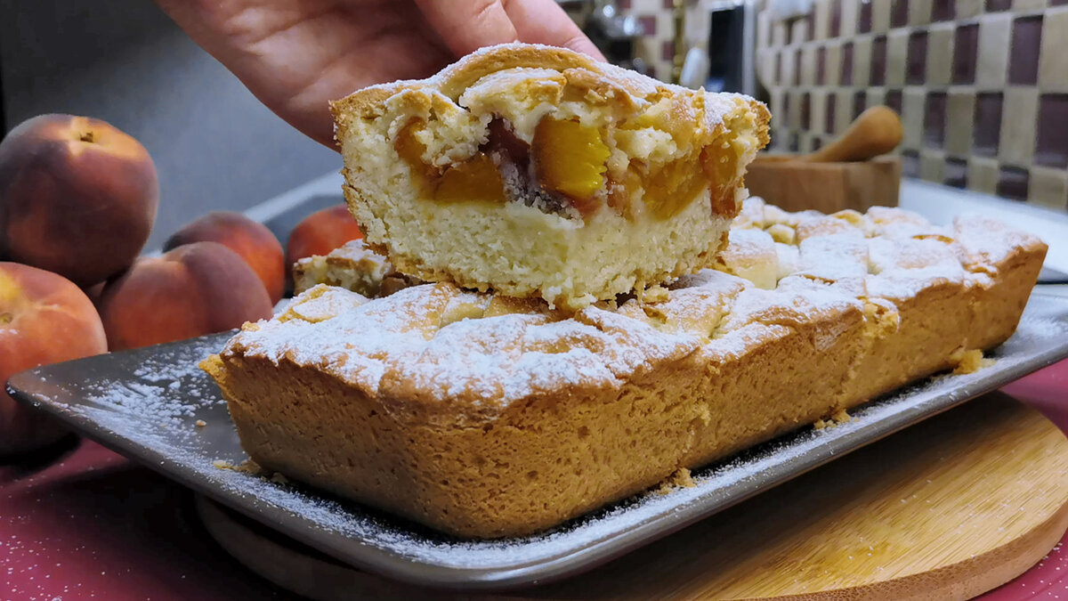 Основу пирога следует распределить по подготовленной форме. Делать это можно руками и лопаткой, создавая небольшой бортик. Дно и стенки необходимо наколоть вилкой — смазывать форму не требуется. В качестве начинки могут быть использованы любые фрукты — свежие или консервированные. Например, персики достаточно просто нарезать и смешать с крахмалом. Если фрукты кислые, можно добавить немного сахара для баланса вкуса.