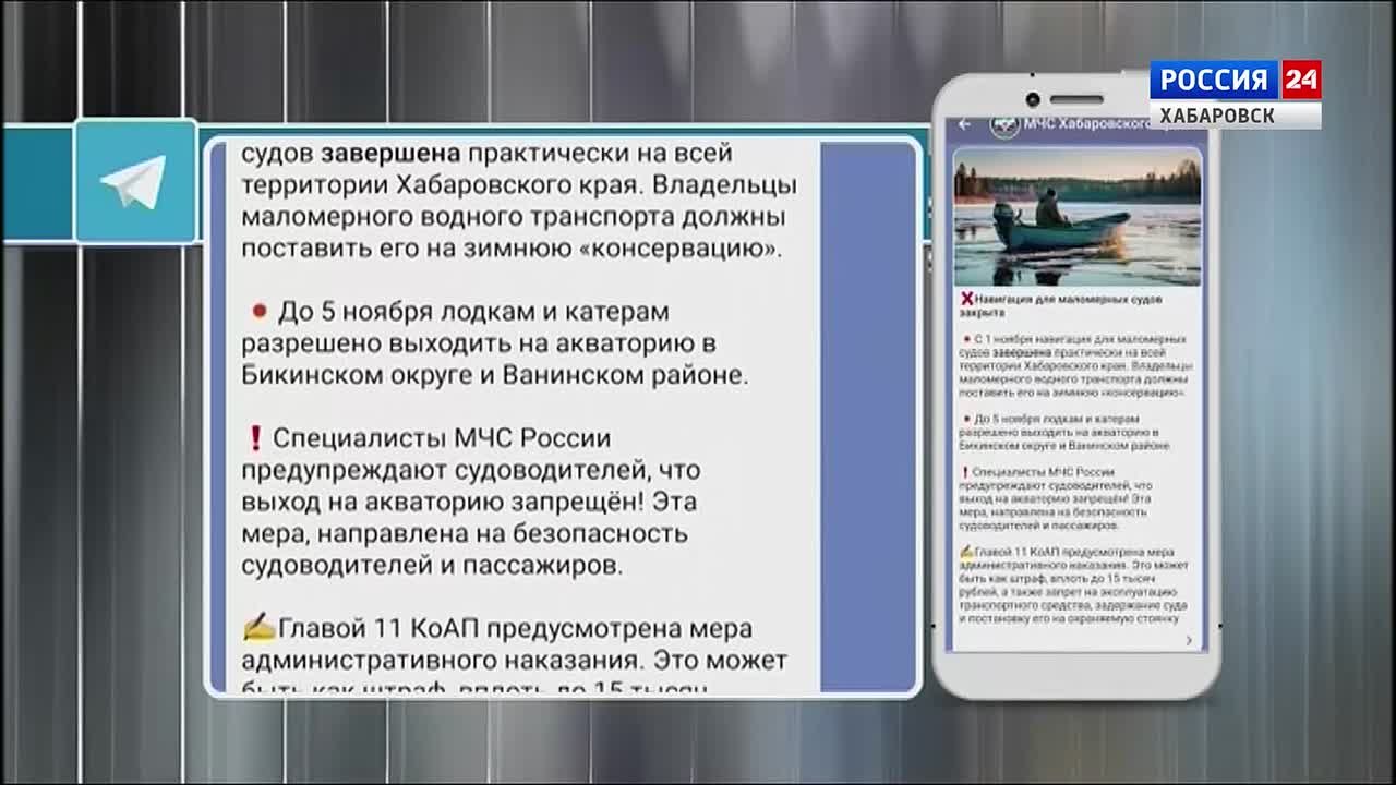 Об этом сообщает телеграм-канал краевого МЧС. До 5 ноября лодкам и катерам разрешено выходить на акваторию в Бикинском округе и Ванинском районе.