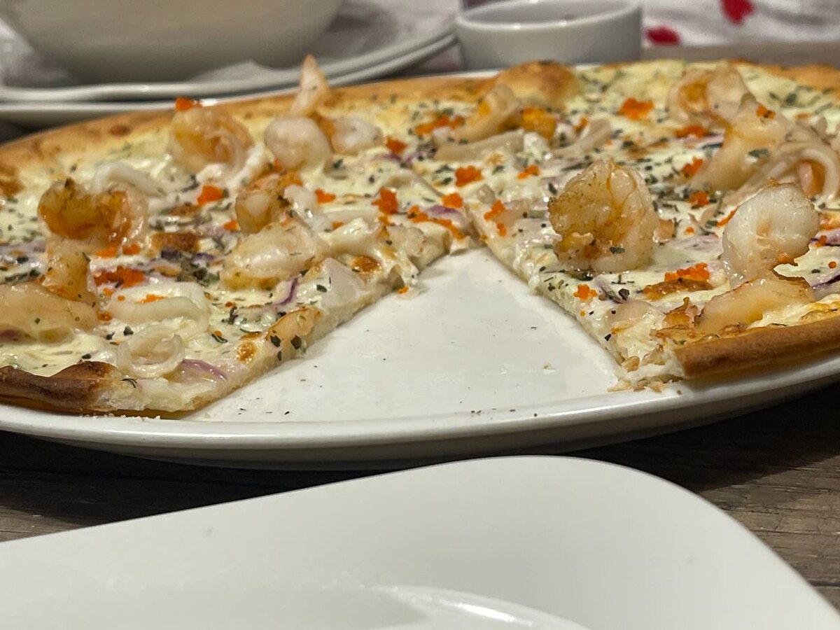 Кулинарные предложения тоже не радуют: подаваемые блюда зачастую оказываются безвкусными и некачественными. В качестве примера можно привести пиццу с морепродуктами, которая по сути больше напоминала лаваш, чем традиционное тесто. Такие "шедевры" кухни разочаровывают не только гостей, но и подрывают доверие к репутации заведения.