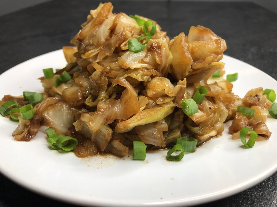 Не накрывайте сковороду крышкой, чтобы капуста не получилась слишком вареной. Пока капуста готовится, подготовьте заправку, смешав соевый соус, сахар, паприку и черный перец. Влейте заправку в сковороду и тщательно перемешайте жалуйста акцентируйте внимание! Еще 5-6 минут тушите капусту с соусом, помешивая время от времени.