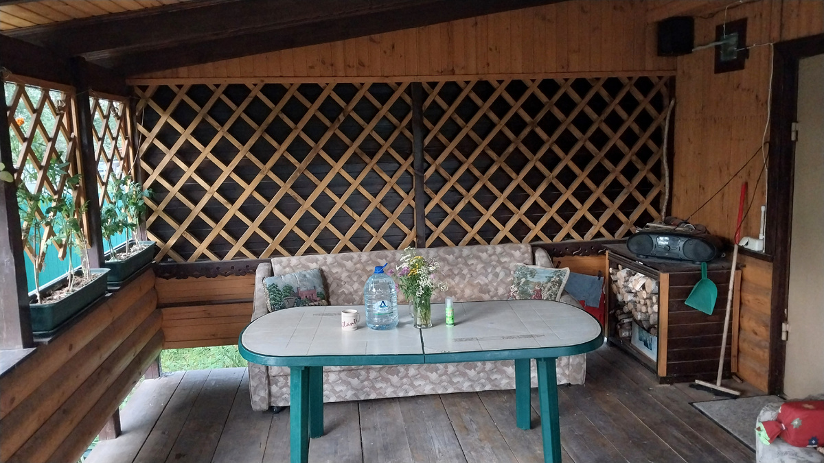 Эти выходные стали настоящим событием для дачного обитателя: на даче появился новый диван, долгожданный и тщательно выбранный. Старый верный диван, который столько лет служил, был оставлен на веранде, где он прекрасно вписался в новую обстановку. Вместе с двумя диванами дача станет ещё более комфортной для приема гостей.