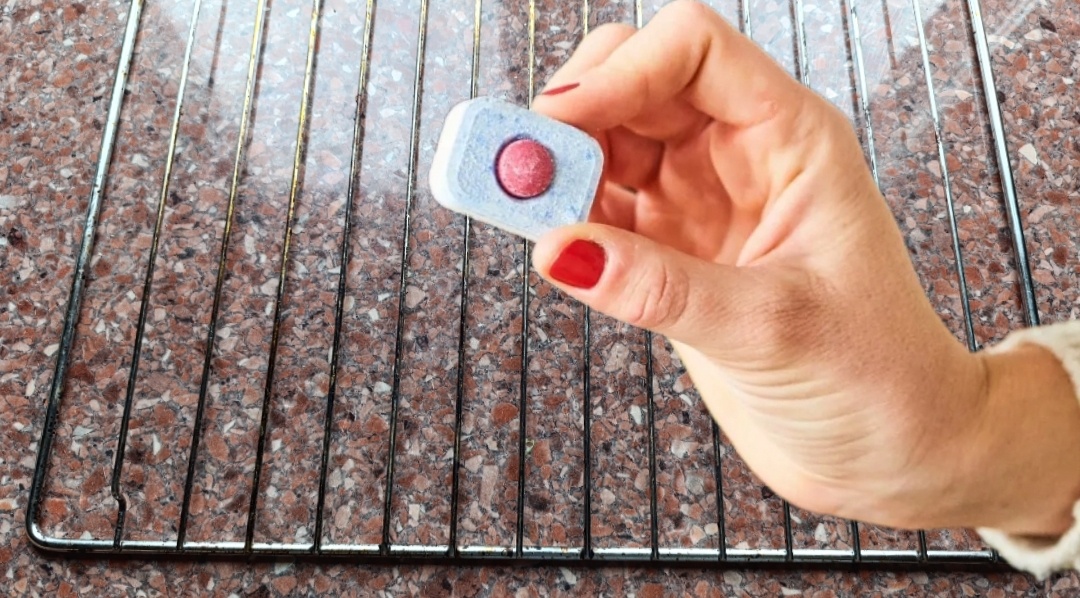 - Таблетка для посудомоечной машины: Оберните решетку фольгой и погрузите её в емкость с горячей водой и таблеткой для посудомойки. Оставьте на некоторое время, чтобы добиться желаемого эффекта.